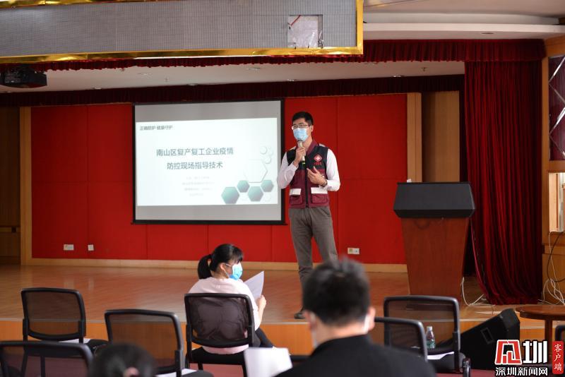 在复工复产期间,南山疾控中心不仅派出多组专家指导组到企业检查企业疫情防控措施、指导企业复工复产,并对企业复工复产指导员开展新冠肺炎疫情防控技术培训,帮助企业发现疫情防控薄弱环节,指导企业正确开展防控工作,理顺工作流程,防止企业发生疫情。