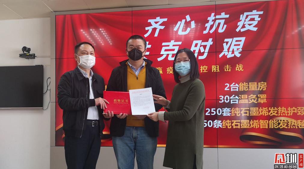 2月7日,烯旺科技向龙岗中心医院捐赠了1台石墨烯杀菌消毒康复房,1台温炙罩,10个石墨烯发热毯、10个石墨烯护颈,价值10万元。