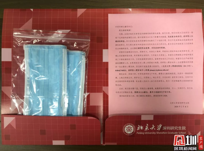 北大深研院针对目前152名还身在湖北的学生,用顺丰快递给每人寄送纸质慰问信一封,一次性医用口罩10个;给贫困生(建档立卡贫困户)除邮寄物资外,每人还发放了慰问金,送去校方关怀和温暖,鼓舞大家,不分战场,共同抗疫。