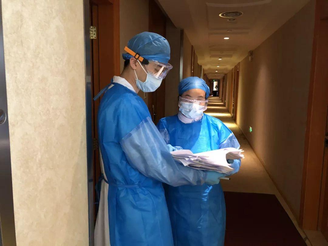 医生、护士长期值班,每日一户一户上门,检测旅客体温2-3次,检查旅客有无出现呼吸道、消化道相关症状,此外,还每天定时进行医学方面的防疫知识科普,给旅客每人每天分发两个口罩。