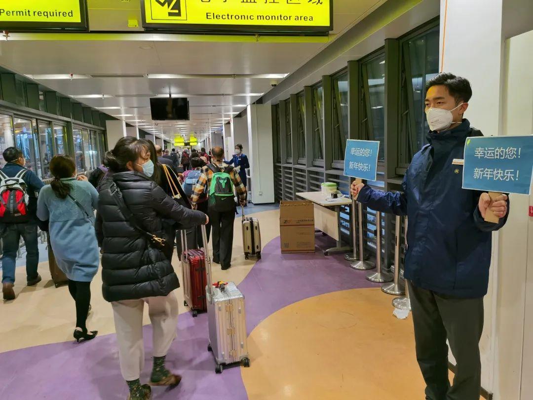 一位位旅客拖着行李箱出门口时,都不忘向工作人员道声“谢谢”,离开时挥手、再挥手。