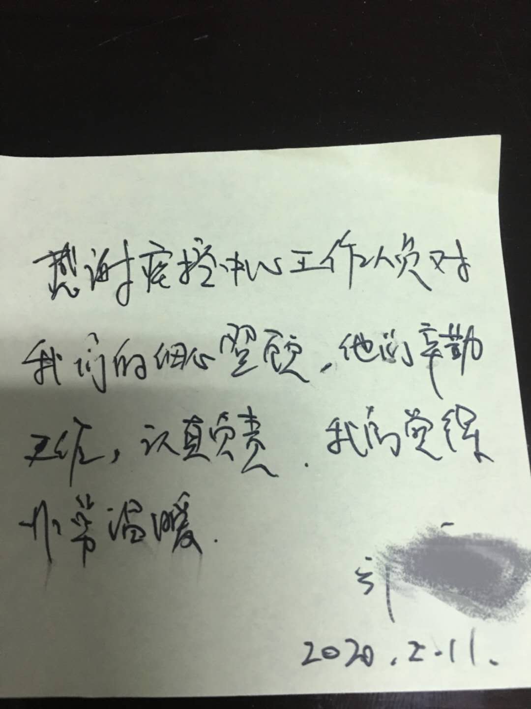 “感谢疾控中心工作人员对我们的细致照顾,他们辛勤工作,认真负责,我们觉得非常温暖”