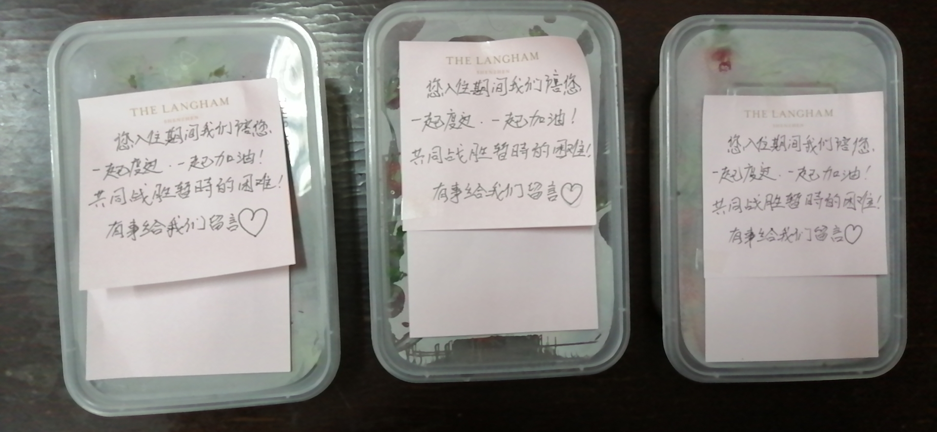 细致贴心的服务,不仅让陈兴会和她的同事们收获到了信任,更是收到了观察人员满满的诚挚的感谢。“有时候我们去采样,就会发现房间门上贴着感谢的小纸条、在微信群里,也会经常收到大家感谢的话、还有一些人在离开酒店时,也会给我们的工作点一个大大的赞,现场写下他们对所有工作人员的感谢。”从1月31日月亮湾健康驿站驿站建立开始,就一直驻守在驿站的陈兴会表示,密接者酒店的管理工作,工作不仅辛苦,而且量大。但是在收到隔离人员感谢小卡片或温馨的话语时,心里就觉得很感动,热泪盈眶。