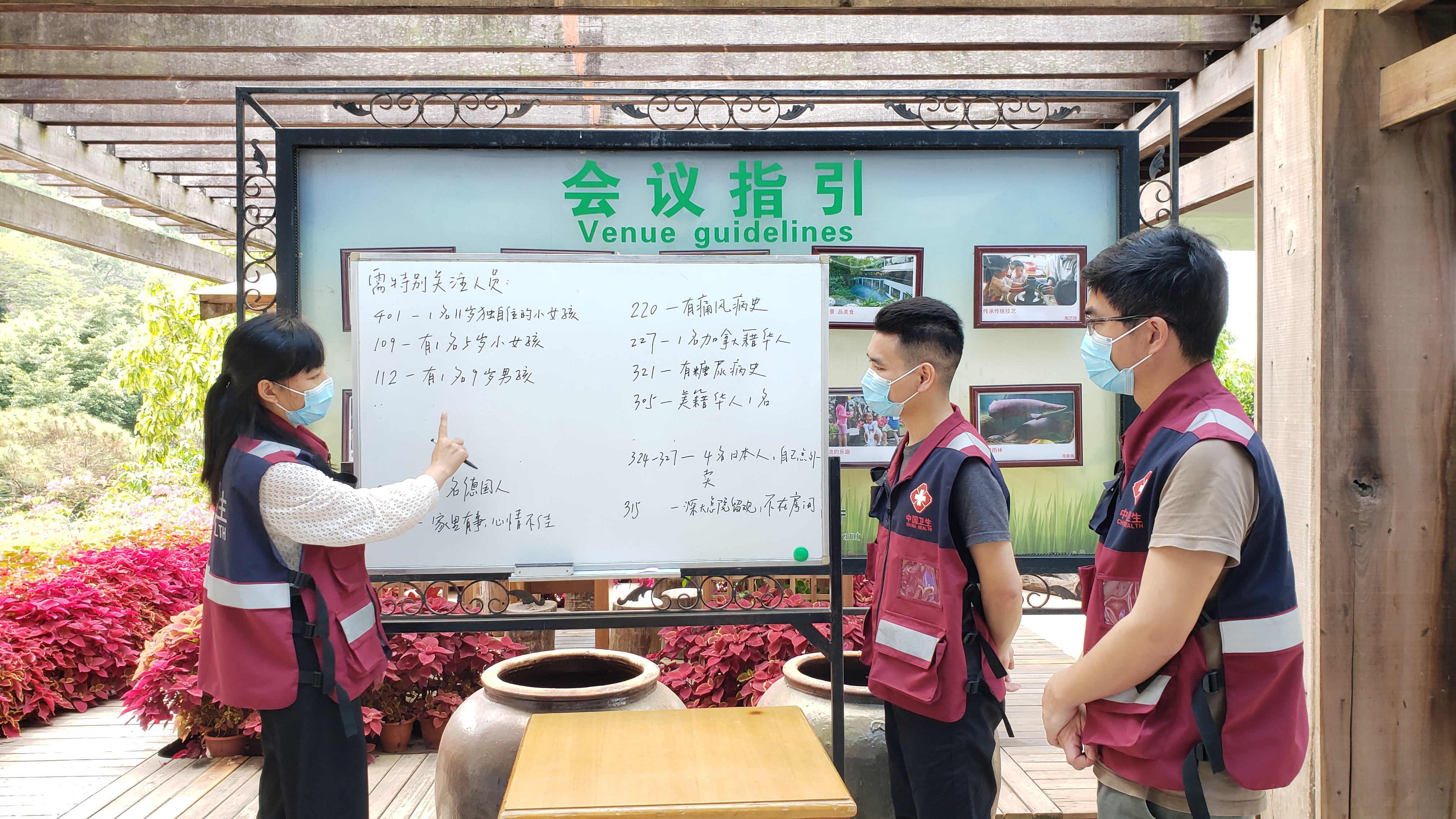 陈兴会是南山区疾控中心驻守在月亮湾健康驿站密切接触者酒店的工作人员之一,还有另外两位男同事曾灼祥和黄天明,三人在酒店密切合作,共同战疫数月。陈兴会介绍,密接者酒店刚建立的时候,来的人都很害怕,尤其是出现核酸检测呈阳性的患者后,很多人的情绪就崩溃了,面对这种情况,虽然也没有经验,但是他们只能硬着头皮上。她说,“我们必须表现出我们的专业,带着大家做,给大家信心,让大家心安。”