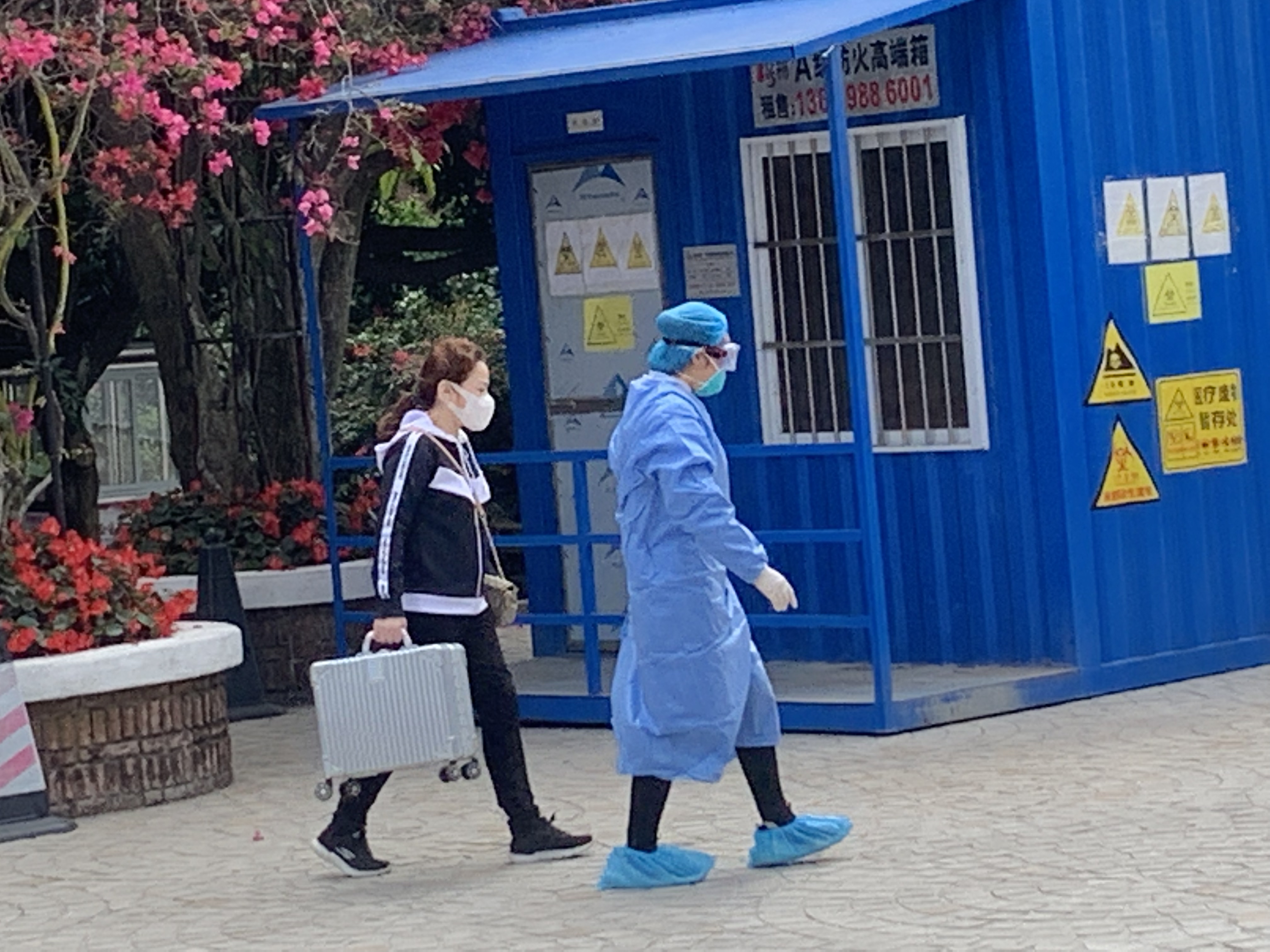 据陈兴会介绍,留观点工作既繁重又需要细致,不仅有日本、法国等多个国家的友人,还有86岁高血压老先生、怀孕21周的孕妇、4个月大婴儿、6岁和9岁两个孩子的家庭等等。她说,隔离不隔爱,这里不仅是医学集中观察点,更是一个温暖的大家庭,集中观察人员入住时,工作人员名单和电话都会及时发给他们。24小时手机开机,保证随叫随到,有什么问题第一时间处理解决。“有任何困难,随时打电话。”这可能是他们说得最多的一句话。穿上防护服就是战士,给予集中观察人员最暖心的依赖,最专业的服务,最无私的爱护。