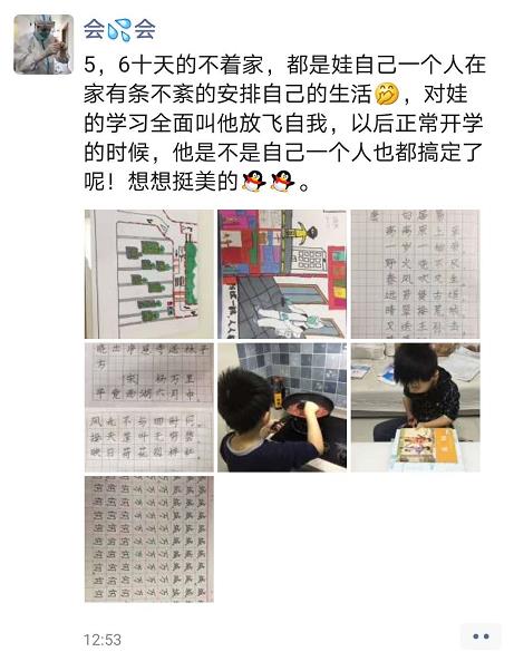 谈及疫情结束后,最想做点什么,南山疾控中心每一位奋战在一线的工作人员,除了休息,就是想弥补自己对父母、孩子、对伴侣的愧疚,想好好陪陪他们。3月27日中午,陈兴会在朋友圈写道:五六十天的不着家,都是娃自己一个人在家有条不紊的安排自己的生活,对娃的学习全面叫他放飞自我,以后正常开学的时候,他是不是自己一个人也都搞定了呢!想想挺美的。配图是8岁的儿子在家自己做饭、自己包书皮和一些作业的图片。