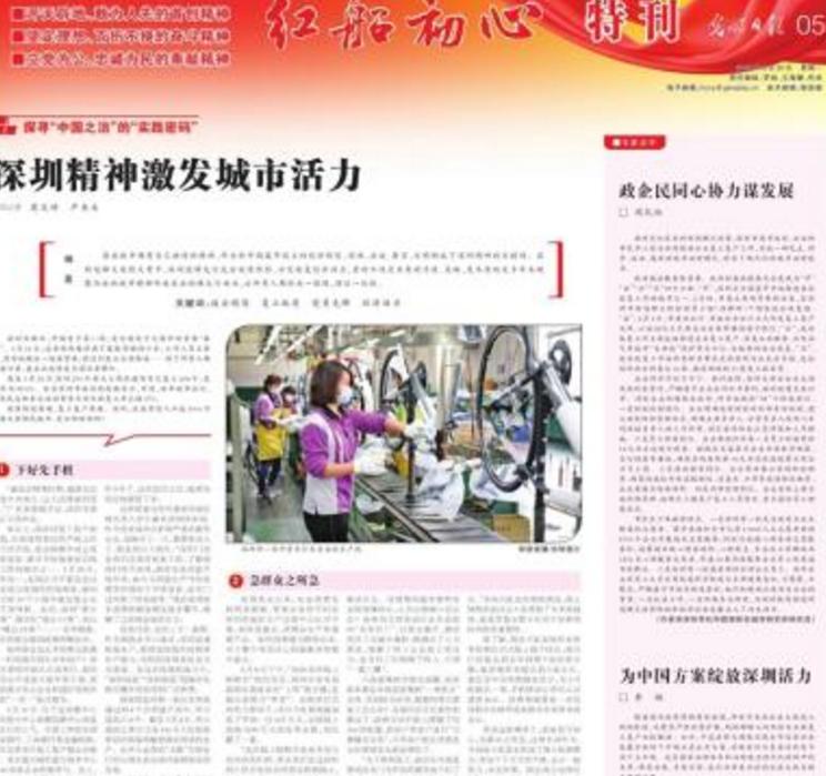 3月30日,《光明日报》刊发文章《深圳精神激发城市活力》,以“让党旗在基层飘扬 ”为题,对南山区党建引领疫情防控、复工复产工作进行了专题报道。