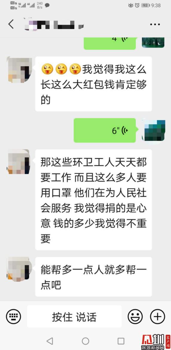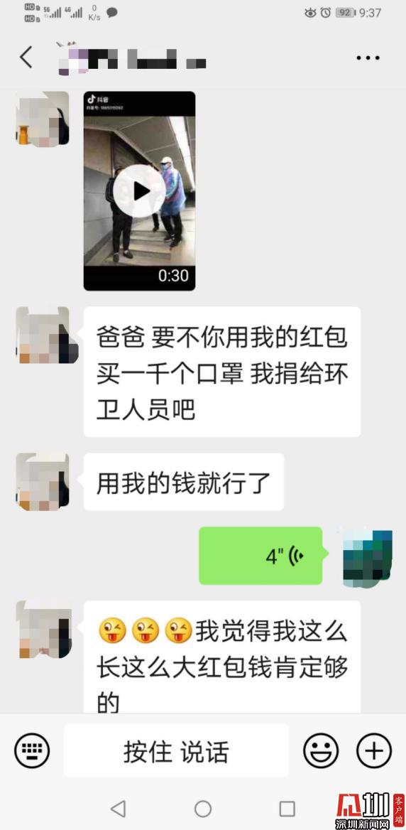 “爸爸,我想用攒下的压岁钱,为环卫工人们买一些口罩,他们辛苦为社区服务,我也想为他们尽一份力。”4月15日下午,家住龙光社区光前村的两位初中生郑伊淇和郑伊婷,拿出自己积攒的部分压岁钱购买了2000个口罩送给社区环卫工人。