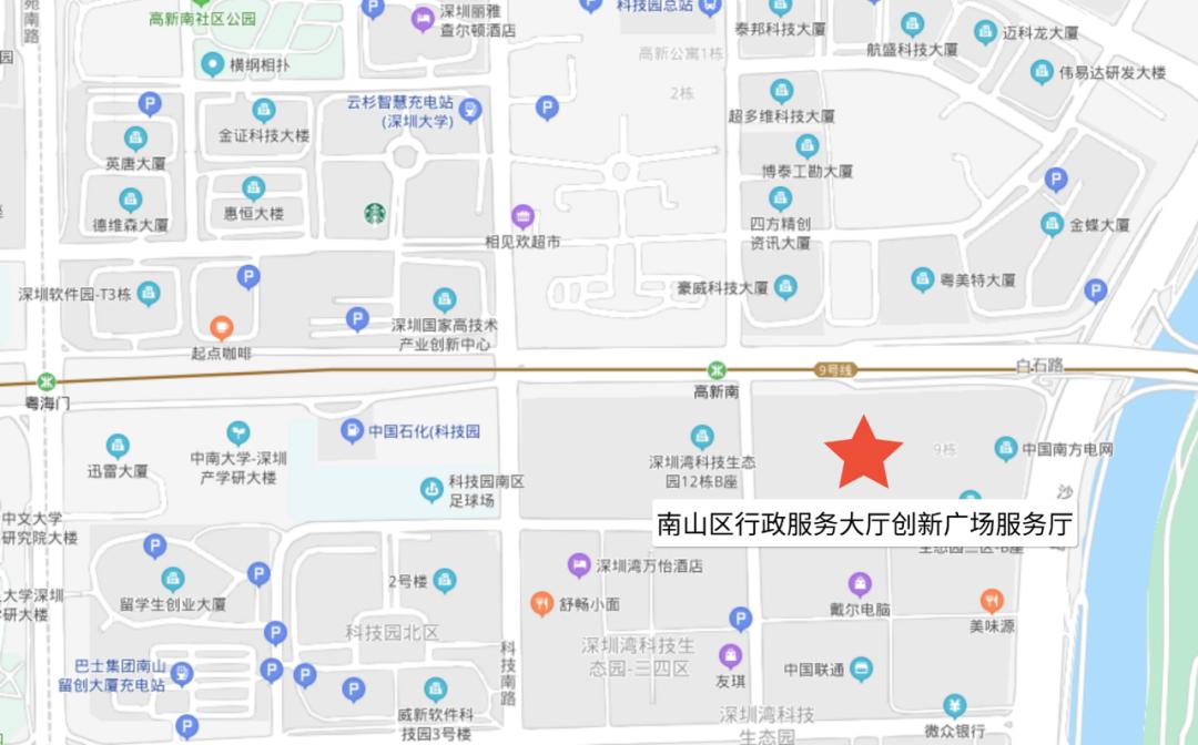 南山区行政服务大厅创新广场服务厅位于深圳湾科技生态园九栋A座三楼。主要为深圳湾创新广场及周边企业和群众提供一种全新的“互联网+政务服务”模式,是南山区全力打造的“政务服务大超市”的重要组成部分。