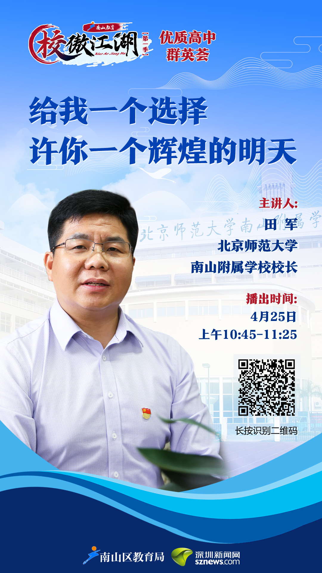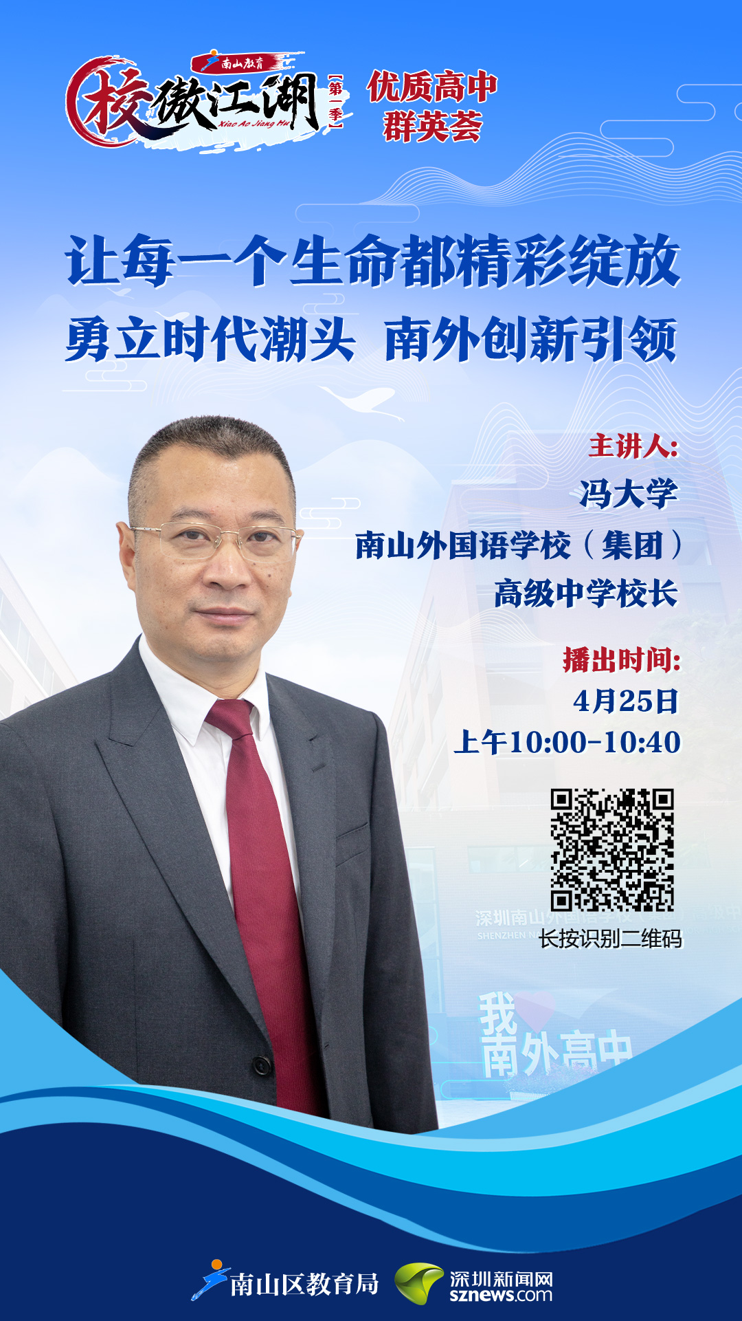 《校傲江湖》第一季主题为南山优质高中群英荟,围绕初三家长和学生们最关心的高中入学相关问题进行说明与介绍,第一期节目邀请了南头中学、育才中学、华侨城中学三所南山优质高中,有针对性地、高效率地为学生与家长们解答了心中困惑。