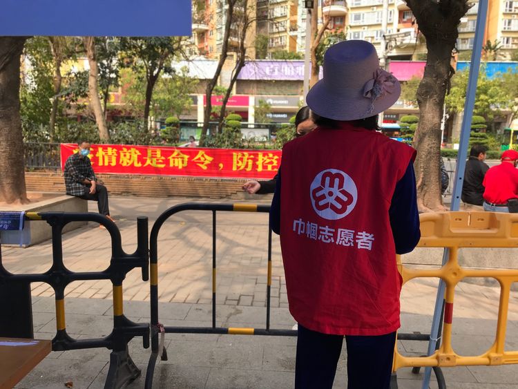 南头街道大新社区的“红马褂”有点与众不同,女同志衣服背后印着“巾帼志愿者”五个大字。
