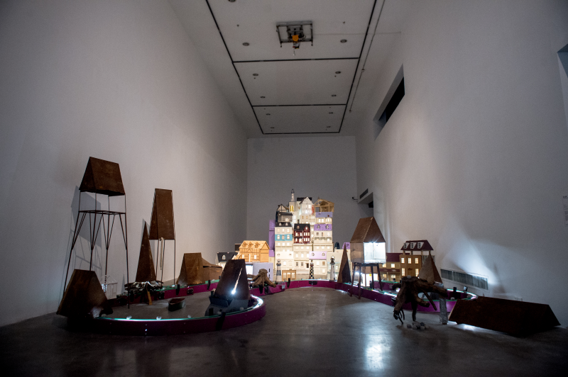 展览主题中的“巴别塔”源于圣经故事:创世纪阶段,人们对美好天堂充满了向上的渴望和憧憬,人类相信自己已经具备了建起高塔的能力并希望扬名开来,于是开始建造未知的高塔。为阻止人类建造通向天堂的高塔,上帝让人类开始使用不同的语言,使人类不能相互沟通,最终各散东西。