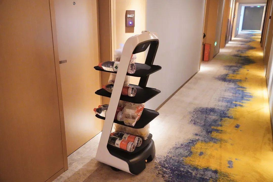 ▲桃源街道医学观察酒店,用机器人为隔离人员送去餐食,减少人员接触风险。