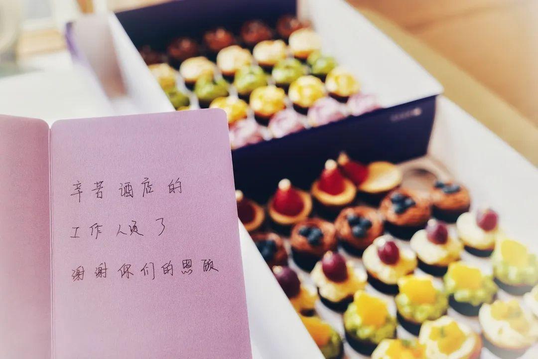 ▲离开酒店后,桦桦向工作人员送去了小蛋糕及感谢信。