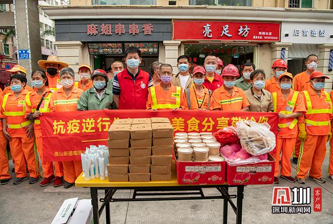 在深圳市志愿服务基金会和广东省优秀社会组织——深圳义工•拥抱阳光公益的支持指导下,爱心美食企业组织员工精心为南园社区一线服务的环卫工人制作特色鸡髀套餐,让疫情期间一直奔忙守护南山的环卫工人,分享精美的潮流美食,为他们送去来自香港爱心美食企业的敬意和感激!