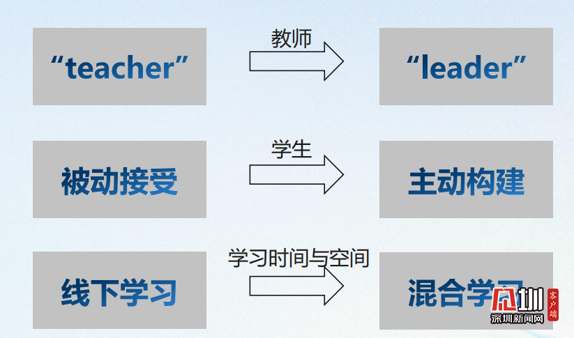 二是重新构建教育内容。三是重新认识技术的力量。四是重新思考教与学方式。刘根平认为,未来的教师要从“teacher”走向“leader”,承担起课程开发者、学习指导者的角色;学生要从被动接受走向主动建构,组建学习共同体,适应“人机协同”新常态;学习的时间与空间将会重构,将可能形成线上线下混合学习、自主学习与班级授课制相结合的新型教育生态,学习者中心地位将更加突出。