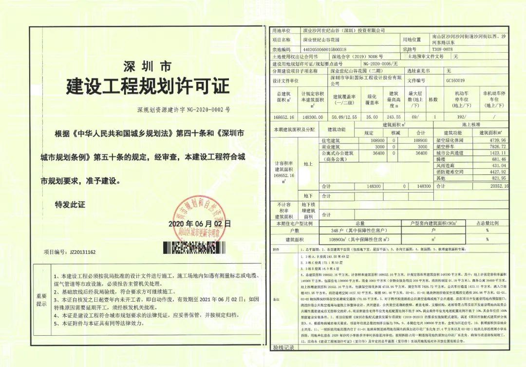 据悉,深业世纪山谷花园分两期开发,一期于2017年获得建设许可证。