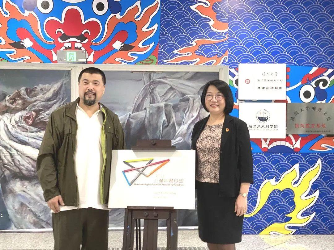 深圳大学海洋艺术研究中心主任张岩鑫教授在交流中介绍深圳大学海洋文化教育科普(邮轮母港)基地是我们成立的第一个海洋文化科普基地,基地的建设得到了来自社会各界的支持,尤其深圳招商蛇口国际邮轮母港有限公司,基地的建设从中国海洋传统历史文化的角度,以“海洋艺术”这种生动的传播方式,培养青少年从小具备“知海、懂海、爱海”的海洋素养和审美素养。基地联合全国沿海重要城市、艺术馆和博物馆开展深度研学教育合作,形成具有鲜明特色的“蔚蓝中国”系列海洋文化教育的扎实课程,向青少年普及中国悠久的海洋历史文化知识,增强青少年海洋文化意识,矢志在国家海洋发展新时代,为国家的海洋建设培养星星火种。今天,第十二个“世界海洋日”暨第十三个“全国海洋宣传日”,我们正式加入到“南山儿童科普联盟”,也预示着我们新的起点、新的征程。
