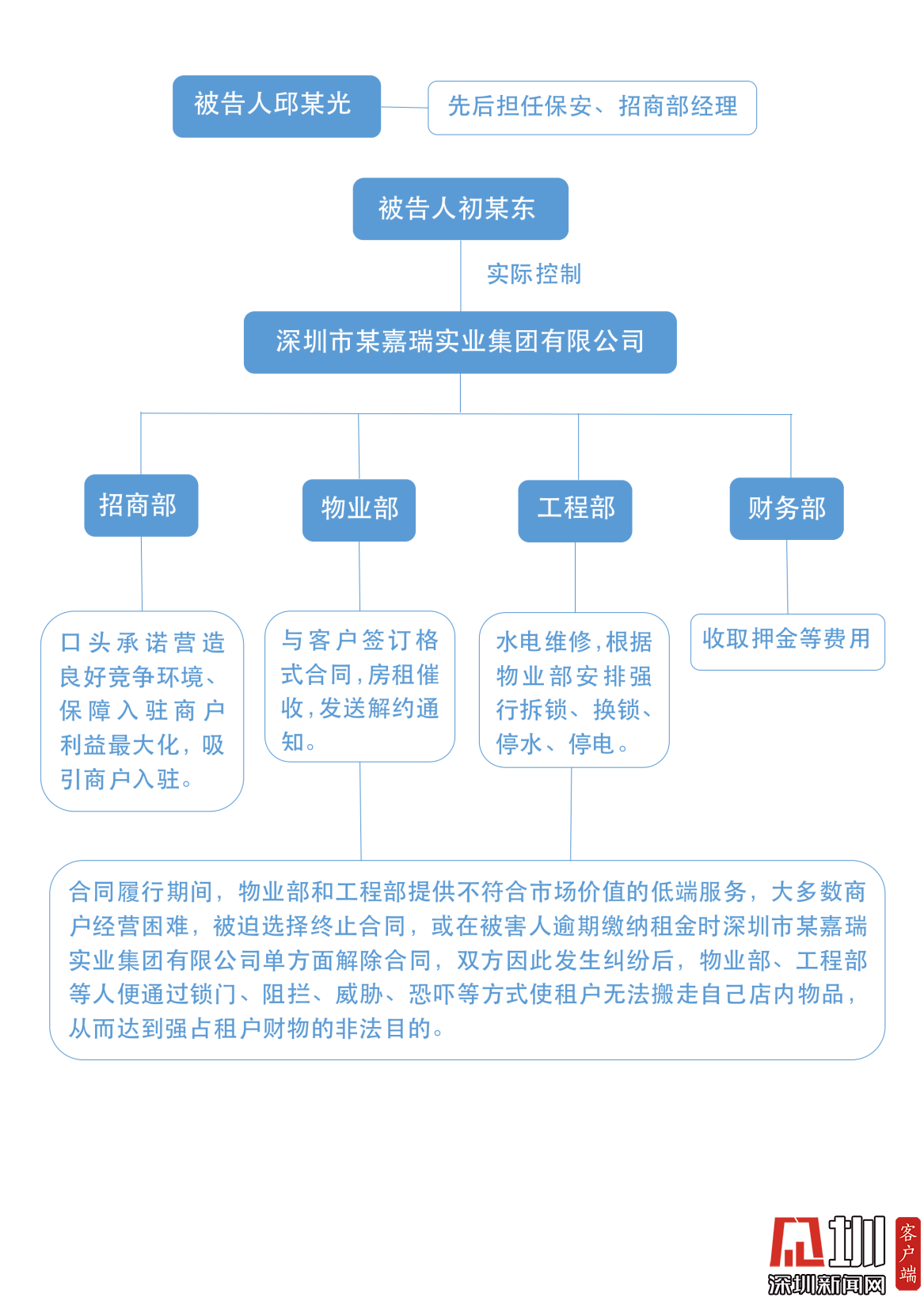 见圳客户端、深圳新闻网讯(记者王志明 通讯员 张庆荣 郑乐琦)2020年6月24日上午,南山法院对一起涉恶案件进行一审公开宣判,该案涉及二手商铺租赁行业的恶势力犯罪集团,被告人初某东等四人犯寻衅滋事罪,分别被判处六年至一年六个月有期徒刑。至此,南山法院受理的涉黑涉恶案件已全部审结。