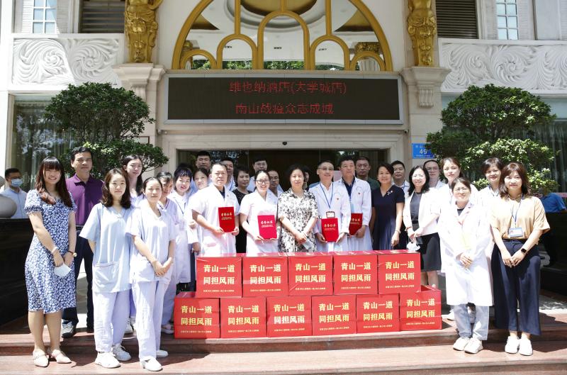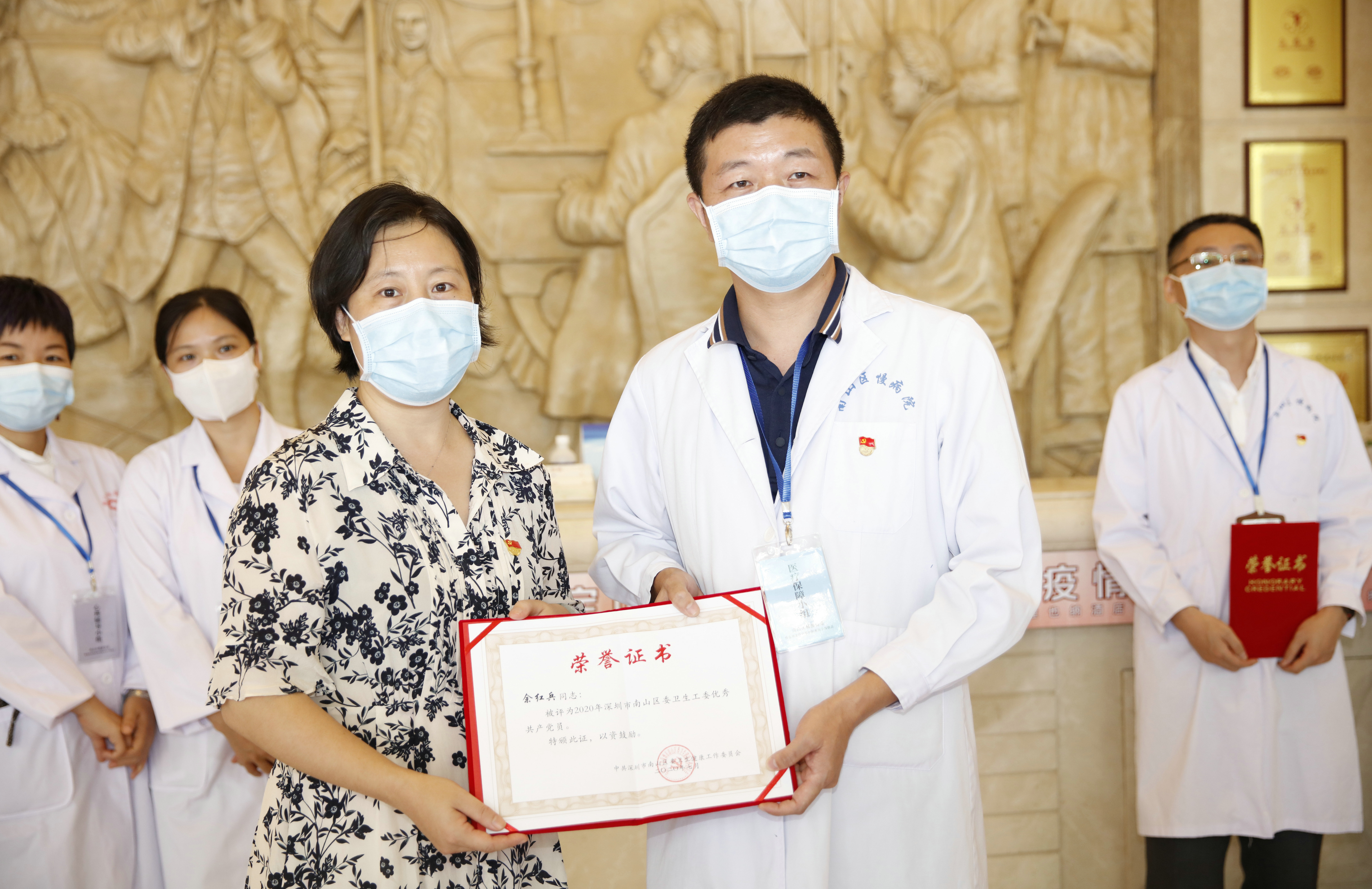 见圳客户端·深圳新闻网讯(记者 曹文丽 通讯员 孙晓龙)第99个建党节来临前夕,6月29日上午,南山区委常委、组织部部长王小蓉,区卫健局党组书记、局长乐丽华,区委卫生工委专职副书记石瑛一行来到南山区疾病预防控制中心和南山区定点隔离点维也纳酒店(大学城店),慰问奋坚守一线抗击新冠病毒的检测人员、医护人员和其他工作人员,并为优秀党组织和个人颁发荣誉证书。