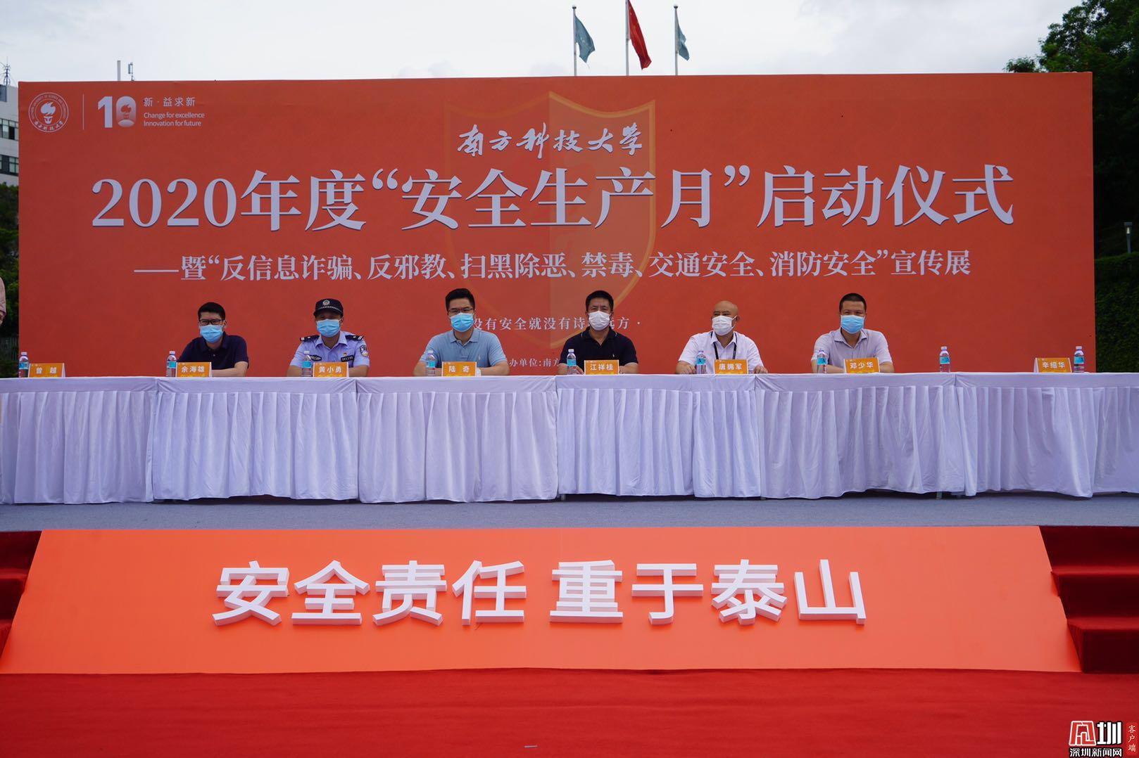 见圳客户端、深圳新闻网讯(记者 王志明)随着“安全生产,平安创建”工作任务的持续推进,2020年6月24日上午,南方科技大学2020年度“安全生产月”——暨“反信息诈骗、反邪教、扫黑除恶、禁毒、交通安全、消防安全”宣传启动仪式在南方科技大学松禾田径场举行。