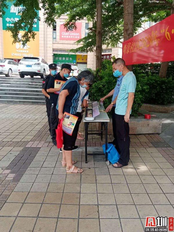 见圳客户端、深圳新闻网讯(记者 王志明 通讯员 方楠)恰逢第33个国际禁毒日,为进一步普及禁毒知识,弘扬法治精神,提高群众识毒、防毒、拒毒的意识以减少毒品带来的相关危害,2020年6月26日上午,南山区禁毒办桃源街道温馨社工联合峰景区警务室、峰景社区工作站,在皇庭香格里拉广场开展了“健康人生,绿色无毒”的专项禁毒宣传活动。