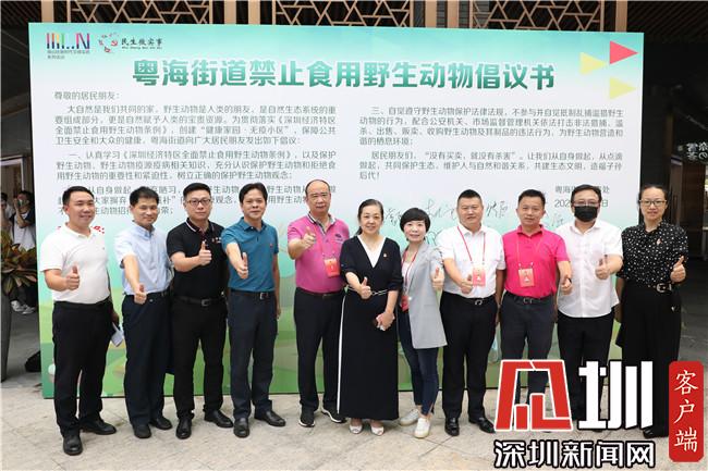 组织方还在现场举办了“健康家园·无疫小区”书画作品展,向大家宣讲从我做起禁食野生动物的理念。为响应《深圳经济特区全面禁止食用野生动物条例》的号召,粤海街道将结合创建“健康家园无疫小区”系列活动,倡导发动辖区商家拒绝售卖野生动物、居民拒绝食用野生动物,将防疫责任落实到个人。