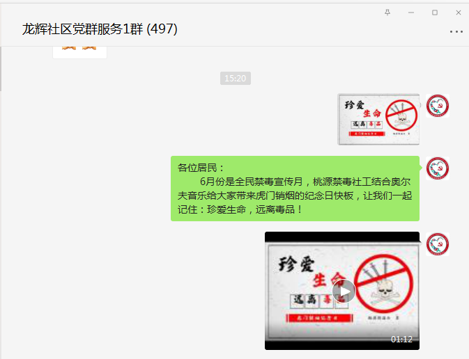 街道禁毒温馨社工充分利用微信网络群向社区居民推送禁毒宣传视频。视频最前面通过问答方式,先引出关于禁毒的节日,后面衔接一段即兴快板,通过快板形式讲述近代历史故事的现实影响,充分强调识毒、防毒、拒毒的重要性与毒品严重危害性。以视频拍摄、讲解毒品知识等形式,积极倡导辖区内居民参与到全民禁毒的行动之中,学会拒毒、防毒、拒毒。