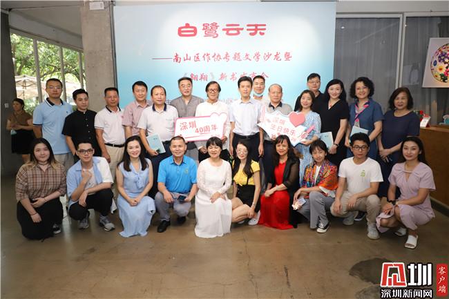 见圳客户端、深圳新闻网讯(记者 王志明 通讯员 梁莎莎)8月26日下午,在欢庆特区成立40周年的喜庆日子里,“白鹭云天——南山区作协专题文学沙龙暨《翱翔》新书发布会”在华侨城绽放花园举行。这是由深圳市南山区文学艺术界联合会主办、南山区作家协会承办的今年南山文坛的一项重要活动。深圳市文联党组成员、专职副主席张忠亮、南山区文联主席林群芳、南山区作协主席吴笛、《伶仃洋》及《深圳文学》主编孙向学,南山区作协部分会员出席了沙龙和发布会。