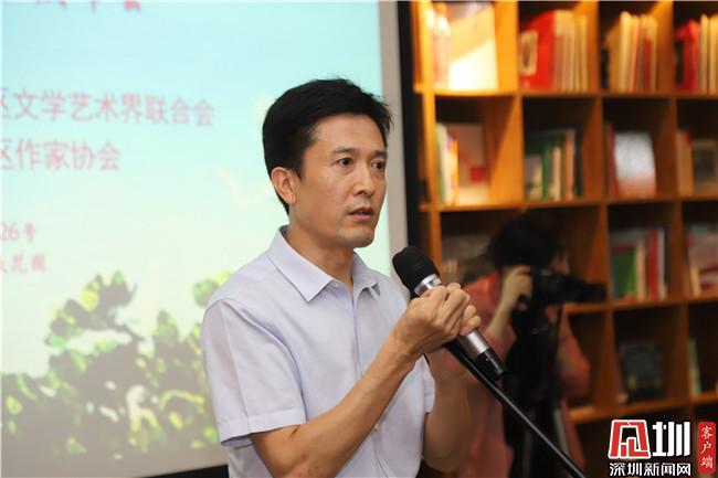 “今天是深圳40岁生日,40年来,深圳作家的的创作与城市发展是同步的,一直以来,改革开放是我们创作的最大的主题。深圳40年来,文学特点和文学现象和经济的发展一样呈现阶段性的特点,不同的年代,这座城市有不同的发展主题。如今,科技创新,欣欣向荣是现在的主题。”市文联副主席张忠亮在沙龙上表示,南山区的文学创作特点和定位,恰好就是紧扣着时代的脉络,紧扣着当下改革开放的前沿,紧扣着当下这座城市的主流。他建议说,从全国文学创作的要求和期盼来讲,大家非常期待能有一部反应中国四十年改革开放波澜壮阔历程的制作,希望这个大的制作能诞生在深圳。南山区集中了深圳市很多优秀的文学创作资源,大家要肩负这样的时代的使命,国家的使命和城市的使命。希望南山区的作家能够创作出更优秀、反映时代特征,创作出这座前沿城市特点好作品,来回报这座伟大的城市,回报这个伟大的时代。