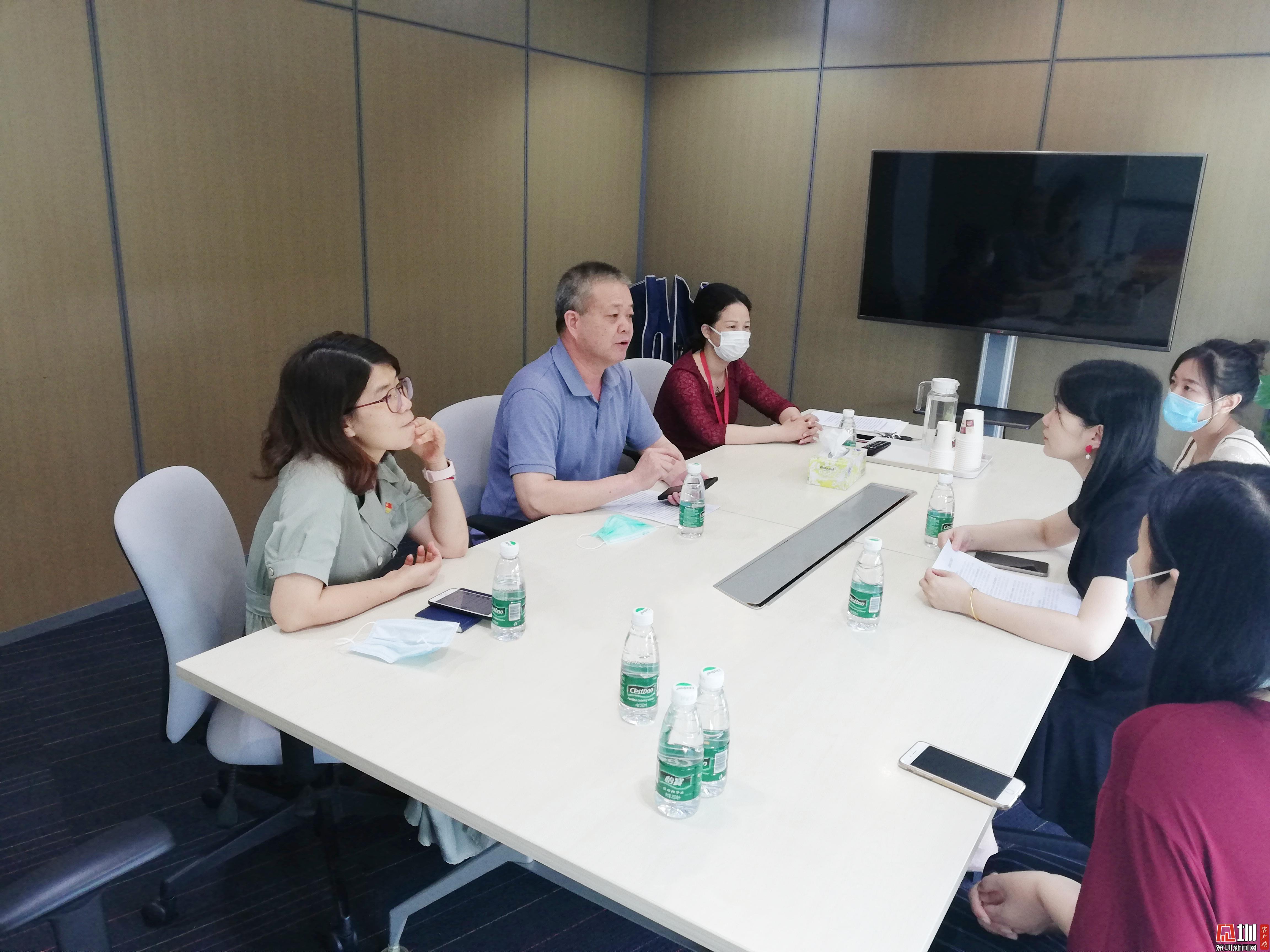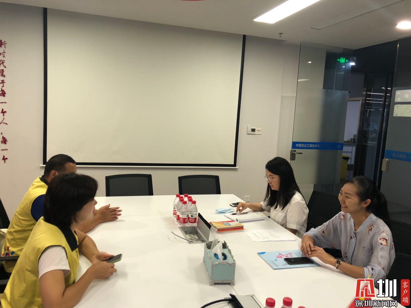 ▲龙光社区工联会主席郑伟林正在听取企业情况介绍。