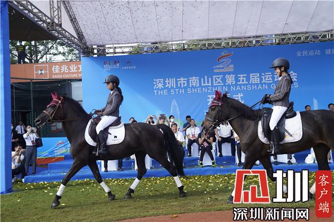 开幕式后进行的马术、拉丁舞以及舞龙舞狮表演等展演节目吸引了不少观众眼球,引得观众掌声潮鸣的同时纷纷摄影留念。据了解,此次展演节目的“演员”由社会组织、辖区学校等团队组织而成,充分凸显南山“体教结合”培养人才的成果。近年来,马术、击剑、赛艇等新兴体育项目在南山开花结果,与南山区整体经济社会发展水平息息相关,也正契合了南山区创新、开放、包容的城区气质,也彰显了南山人大胆尝试、勇于突破、永攀高峰的优秀品质。在开拓新兴体育项目的同时,南山区紧抓传统体育项目的开展,并高度重视体教结合工作。南山区通过制定《2019- -2022南山区体育传统项目学校(高水平运动项目学校)管理办法》,命名高水平运动项目学校14所(16个项次),体育传统项目学校59所(86个项次),为南山区青少年体育后备人才培养及可持续发展奠定了良好的基础。
