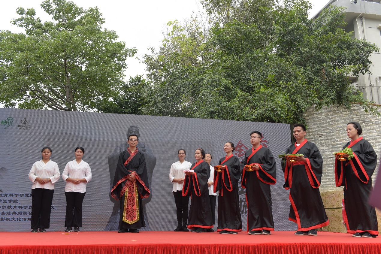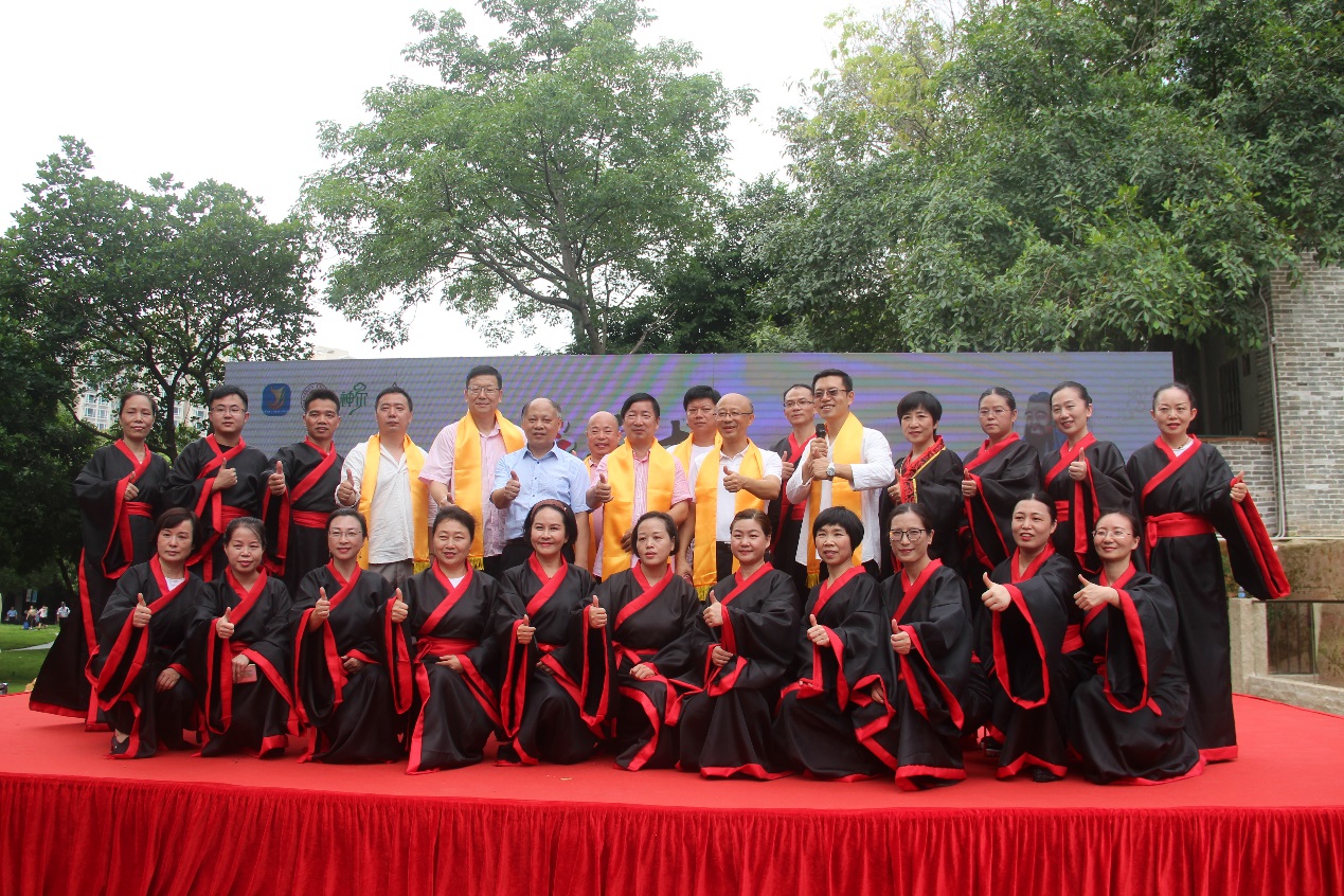 延师晋堂、明师开悟、训导读经,参与活动的义工、社区居民、家长代表与与会专家共诵经典《论语·学而篇》《诗经·无衣》《大学》《中庸》《礼记·大同篇》