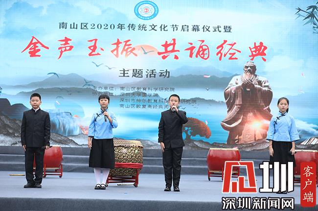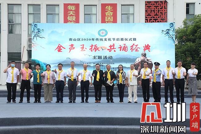 见圳客户端、深圳新闻网讯(记者 王志明 通讯员 翁胜利 商洪德)9月28日,“南山区2020年传统文化节启幕仪式暨‘金声玉振共诵经典’主题活动”启幕仪式在卓雅小学举行。深圳市委宣传部巡视员韩望喜、清华大学深圳国际研究生院党委书记武晓峰、北京大学深圳研究生院党委副书记安晓朋、南方科技大学宣传部长张凌、南山区教育科学研究院院长余耀贤、桃源街道及社区领导等出席了该活动。