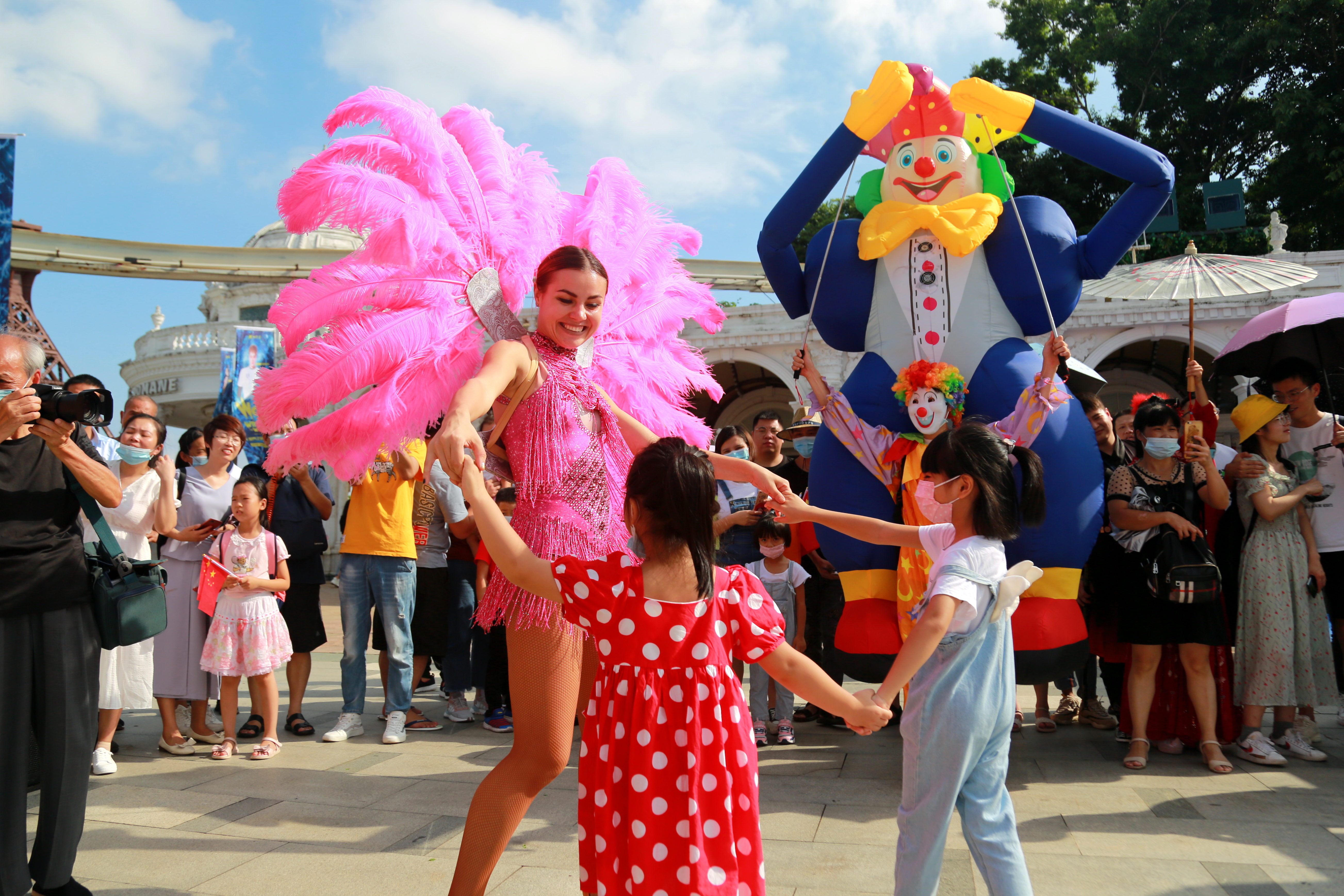 园区内,全新风情舞SHOW在埃菲尔铁塔下激情上演。中外演员以全新编排的舞蹈向观众展示时尚与激情风采。《无价之姐》、《卡路里》等流行歌曲的唱跳表演让观众耳目一新,乌克兰的现代舞秀与肯尼亚的杂技舞蹈让台下观众爆发出阵阵喝彩。