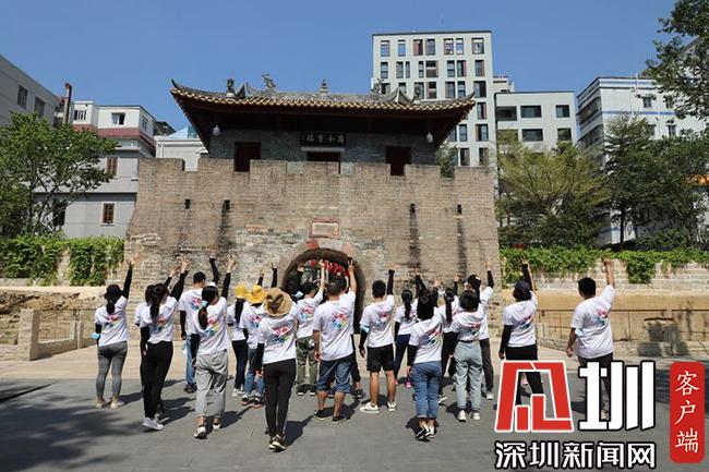 在打卡终点——南头古城南城门,小伙伴们洋溢着疲惫的笑容。