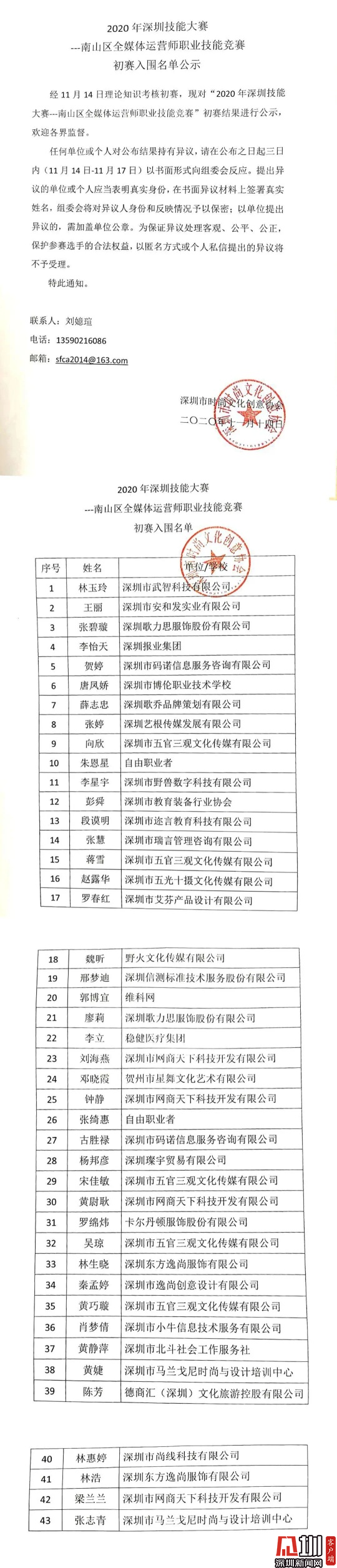 见圳客户端、深圳新闻网讯(记者 黄裕君)11月14日,由 深圳市南山区人力资源局主办的2020深圳技能大赛—南山区全媒体运营师职业技能竞赛初赛成功举办。
