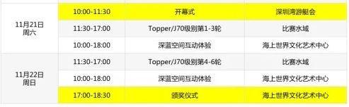 赛事共分为两个组别,其中J/70为中国俱乐部杯帆船挑战赛青少年组指定用船,Topper为深圳市南山区第五届运动会青少年帆船比赛指定用船,所有参赛队将在深圳湾游艇会集结备赛。
