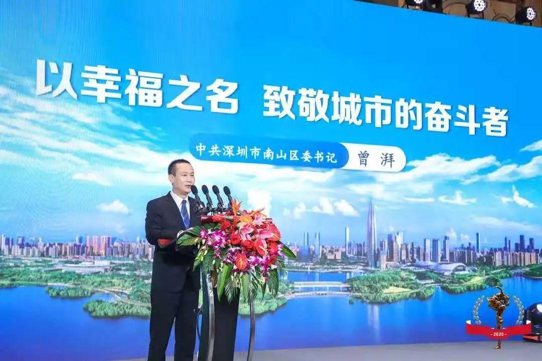 11月18日,2020中国幸福城市论坛在浙江杭州举行。南山区委书记曾湃在论坛上作主旨发言,区委常委、宣传部部长廖子彬出席颁奖仪式,区委常委、区委(政府)办主任胡芸参加论坛活动。