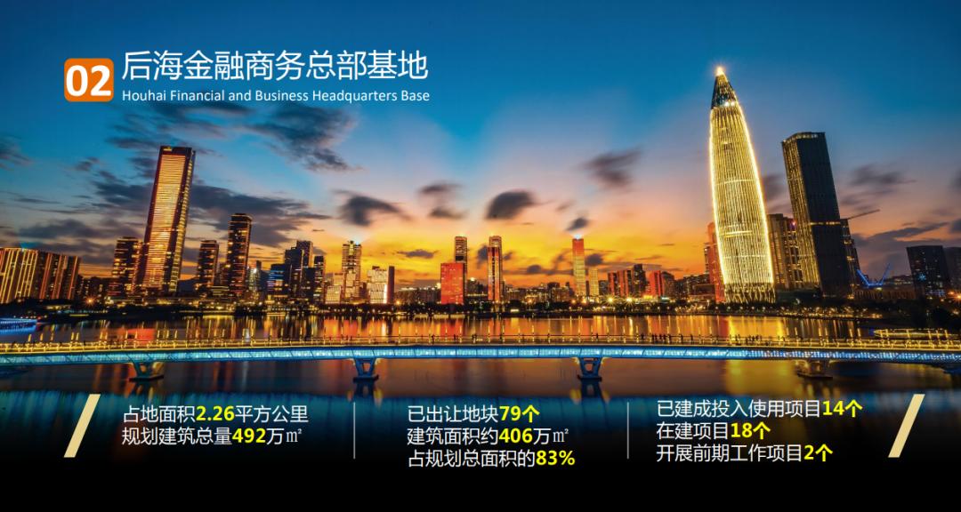 后海金融商务总部基地 总用地面积约2.26平方公里,规划总建筑面积约492万平方米。