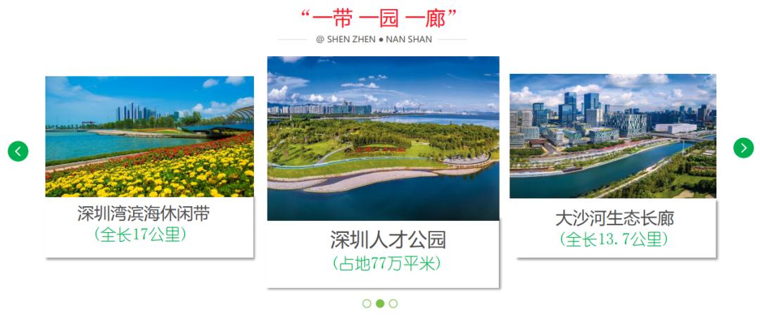 南山自然禀赋优越,山河湖海资源丰富,建成深圳湾滨海休闲带、深圳人才公园、大沙河生态长廊三大网红公园,公园总数达162个,平均每万名常住人口就拥有一个公园。