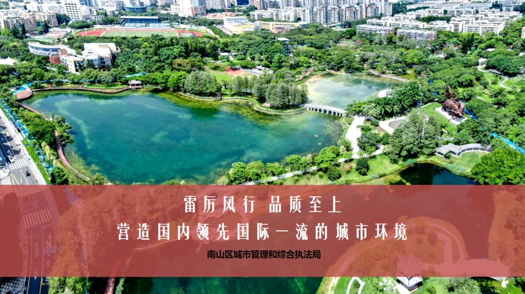 攻坚克难、 真抓实干,圆满完成了疫情防控、四十周年庆典保障、文明城市创建迎检、环境品质提升等重大任务。提升环境品质品位,推进公园建设精品化,建成西丽生态公园,提升改造四海公园,新建南海公园一期、爱榕社区公园、海上世界社区公园等一批特色主题公园,打造市民休闲游玩的网红“打卡”胜地,为南山区新增靓丽的生态景观名片。同时,以市民为中心做好城管领域民生实事,深入推进垃圾分类,完成715个住宅小区和35个城中村“集中分类投放+定时定点督导”模式创建。