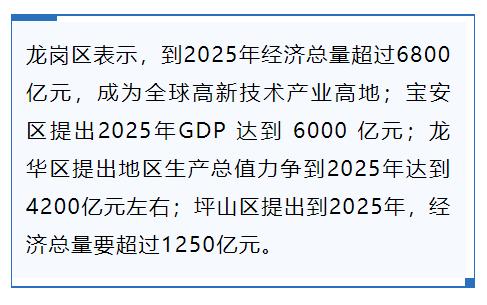 在各区的党代会报告中,立下“经济军令状”的还有龙岗区、宝安区、龙华区、坪山区。