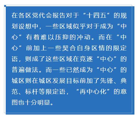 这样的判断在深圳各区的党代会报告中得到了印证,一些城区提出成为“中心”的发展目标,本身也是基于深圳这座城市的现实发展情况而制定的。