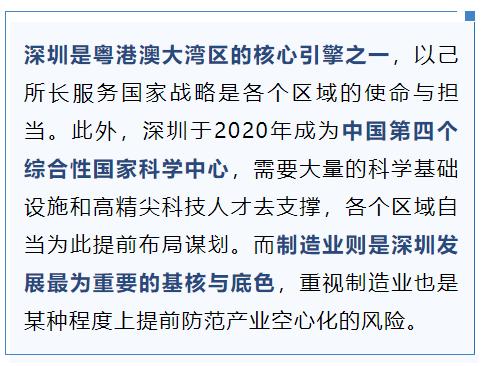 此外,像宝安、龙岗这样的产业大区,也都不约而同得打出制造业牌,提出发力工业互联网和打造全球电子信息产业高地的发展目标。