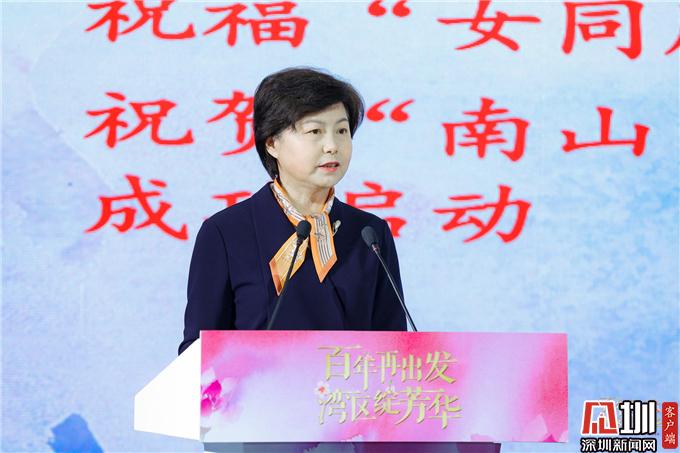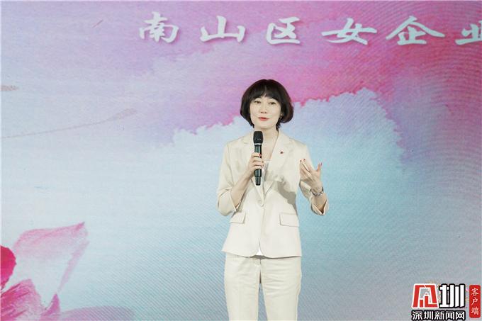 市委统战部副部长、市工商联党组书记蔡立在活动现场发言:“同庆三八,感恩时代。畅想未来,绽放湾区。”畅谈三八妇女节设立的历史,她谈到,广大女性从历史上致力于追求男女平等、价值认可升华为如今主动绽放自己的人生价值,把自己的人生价值融入到时代、融入到了社会进步的进程中来,是巨大的进步。“男女并驾,如日方东。”深圳、南山更是如此,去年虽受疫情等多方面的影响,经济下行压力大,但深圳、南山率先的实现转型,深圳市GDP达2.77万亿,离不开广大女企业家们的共同努力。南山作为大湾区发展进程中的“冲锋舟”、深圳高科技改革开放的先行地,将大有作为。“感恩时代,湾区绽放。”她表示,近年来,南山区工商联在企业服务、党建工作上做了大量出色的工作,引导辖区企业家“初心向党”,营造一流营商环境。蔡立书记希望广大女性将自己的智慧,将女性特有的坚韧、特有的包容、特有的执着,把自己的热情、智慧、力量融入在职场中、融入到时代发展。