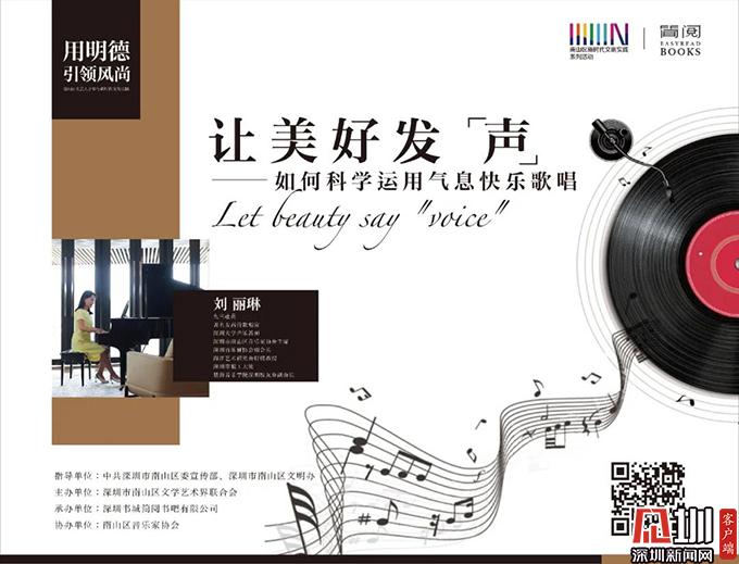 3月7日,女高音歌唱家、深圳大学音乐教师、深圳市南山区音乐家协会主席、深圳音乐剧协会副会长刘丽琳老师在被网友称为“最美日落”的白鹭坡书吧成功举办了“用明德引领风尚”之“让美好发‘声’——如何科学运用气息快乐唱歌”的沙龙活动。“用明德引领风尚”是深圳市南山区文学艺术界联合会(以下简称南山文联)去年的一个重点项目。由南山文联主办,深圳书城简阅书吧有限公司承办,该项目将南山区六个不同艺术领域的六位艺术家向广大南山区市民宣传推广,引导艺术工作者更多地参与到南山区的新时代文明实践中,提高南山区的文化艺术氛围,让市民朋友们都能从身边的讲座、展览中得到文化艺术的滋养。如:书法家谢松松的“明德尚美”书法展,舞蹈艺术家张月龙的“在生命中起舞”、小说家蔡东的“我们需要阅读”等不同主题的沙龙,均获得了外界的一致好评。让美好发“声”作为“用明德引领风尚”这个项目的最后一环,旨在以音乐滋养心灵,焕发出美的品德与情操。气息是歌唱时声音的动力,是科学发声的基础,歌唱呼吸是否正确,对于发声与歌唱来说,都起着决定性作用。活动现场,刘丽琳老师讲解了胸式、腹式、胸腹式三种呼吸方法,还教授大家学会用仰卧吸气、哈腰吸气、“气泵”、急吸急呼、仰卧吸气、“嘟”或“噗”的发音这六种气息的练习方法,快速掌握气息的训练诀窍,学会科学发声,通过细细的讲解与倾听,还收获了一些日常训练和护理嗓子的方法。(刘丽琳老师现场通过“吹纸巾”的练习,教授大家学会如何运用气息科学发声)