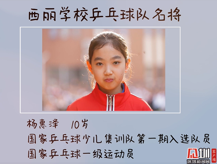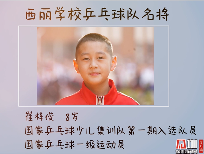 见圳客户端、深圳新闻网讯(记者 王志明 通讯员 潘虹宇 李捷图 )2020年末,西丽学校喜报频传,一则则新闻刷屏朋友圈,《西丽学校两名乒乓球队员入选国家少儿集训队》《西丽学校再添2名国家一级运动员》……各界好奇的目光投向了这两名乒乓小将。本期人物专访就将带大家认识新闻背后的“大乒小将”。