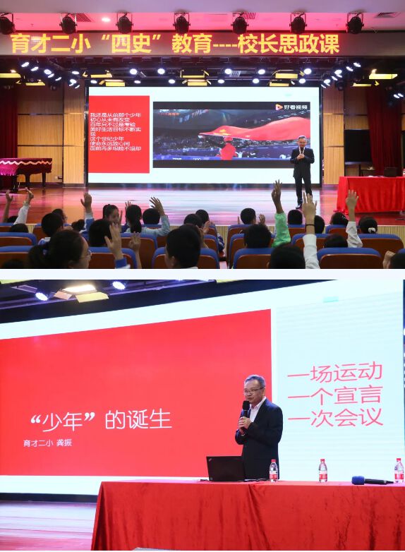 3月26日周五下午,由龚振校长为全校六年级学生进行思政课《“少年”的诞生》。龚校长通过三个“一”:一场运动,一个宣言,一次会议,深入浅出地给同学们讲解了中国共产党早期的辉煌历程!六年级学生深度学习,感触颇丰。同学们都说,龚校长思政课,给他们带来了平日里很多不了解的知识。