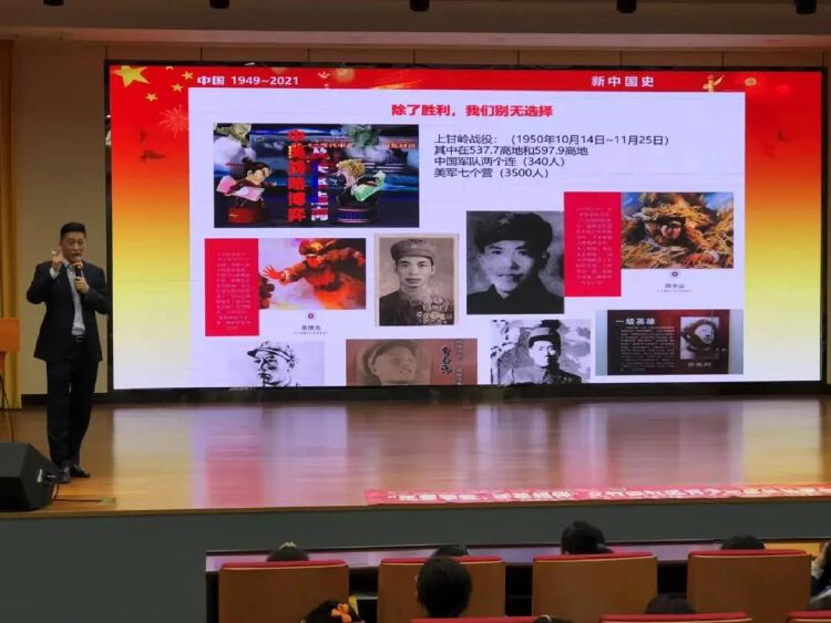 学生乙:我感觉这节课,龚振校长让我们了解到了我们平时很难触及到的党的发展领域,我觉得这节课让我们很好地认识党和人民,了解我们之前不懂的一些知识。